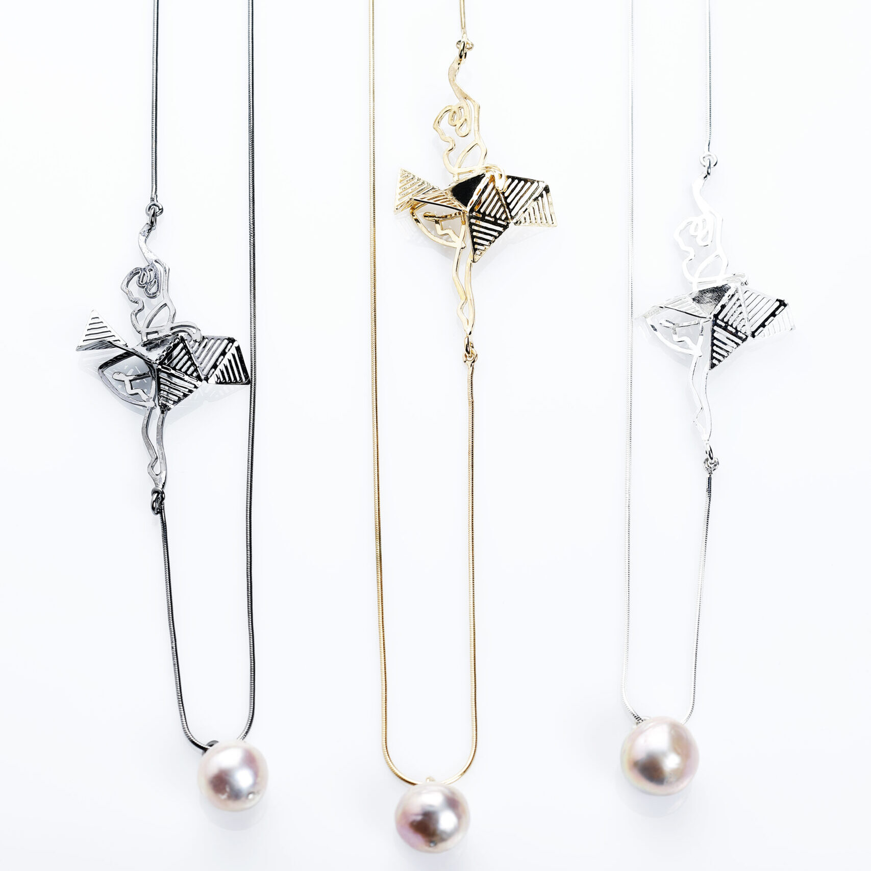 Pearl, silver necklace “Ballerina”. Available in both gold-plated and rhodium-plated finishes.